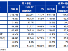 本站讯:8月15日,恒力石化股份有限公司公告称,2022年上半年,公司实现营收1191.55亿元,同比增长13.94%;净利润80.26亿元,同