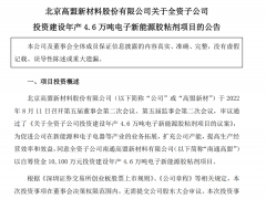 - 年产4.6万吨!高盟新材料股份有限公司投建胶粘剂项目,包含3.2万吨有机硅密封胶