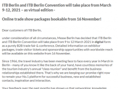 - 世界大的领先旅游贸易展itb berlin及同期会议将转为纯数字模式